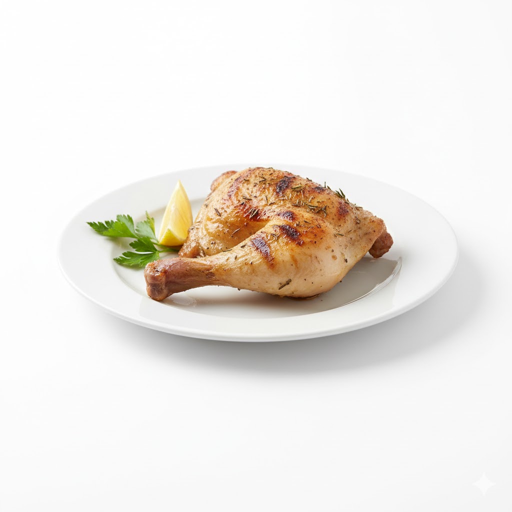 تبدأ الوجبة باختيار فرخة طازجة، ثم تُطهى أو تُشوى بطريقة تحافظ على طراوة اللحم ونكهته الغنية. يُقدّم ربع فرخة ورك مع أرز أبيض مفلفل مطهو بعناية ليكمل الطعم ويمنح الشعور بالشبع الكامل.