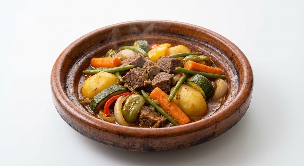 يتم تحضير طاجن خضار باللحمة باستخدام لحمة مختارة بعناية، تُطهى مع تشكيلة من الخضروات الطازجة زي البطاطس، الكوسة، الجزر، والبصل، مع صلصة متبلة بتوابل شرقية خفيفة تبرز نكهة المكونات بدون ما تطغى عليها. طريقة الطهي البطيئة داخل الطاجن بتساعد على امتزاج النكهات وتدي طراوة مميزة للحمة.