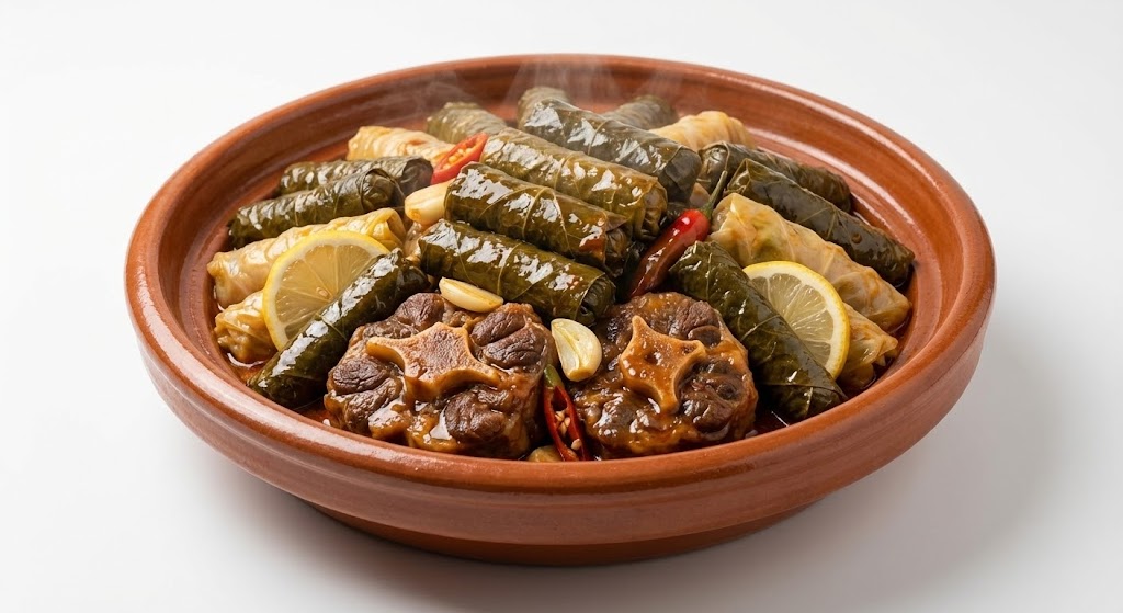 ما هو طاجن عكاوي بورق العنب والكرنب؟