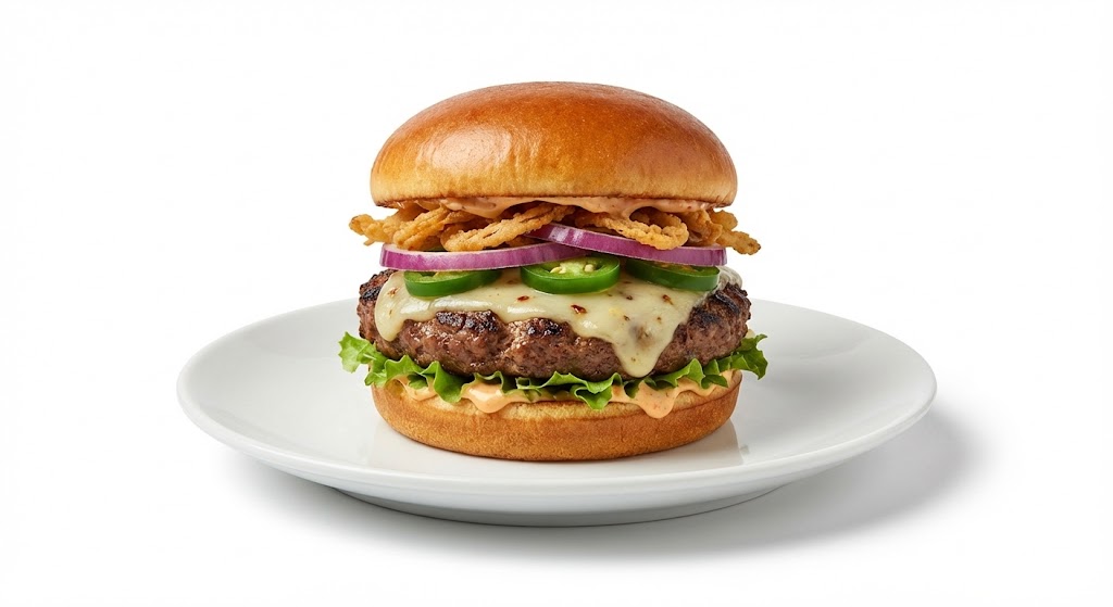 يمتاز بمزيج فريد بين الحرارة الخفيفة للهالبينو، الطعم الغني للحم المشوي، والقوام الكريمي للجبنة، مع إضافة الخضار الطازجة التي تمنح تجربة مختلفة عن البرجر التقليدي.