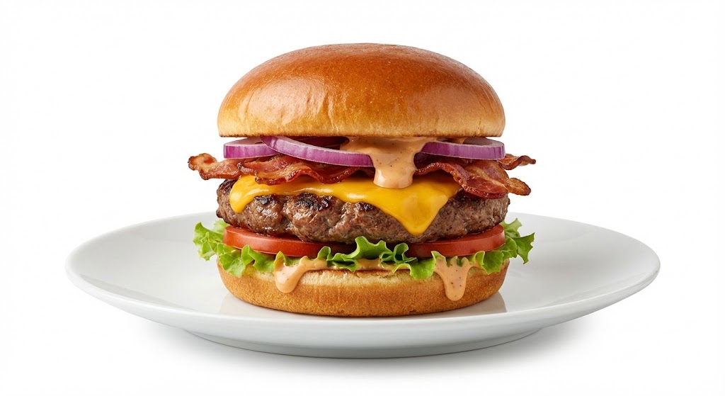 يمتاز بمزيج رائع بين النكهة المدخنة للبيكون، الطعم الكريمي للجبنة، والعصارة الطبيعية للحم، مما يجعله خيارًا مثاليًا لعشاق البرجر الكلاسيكي.
