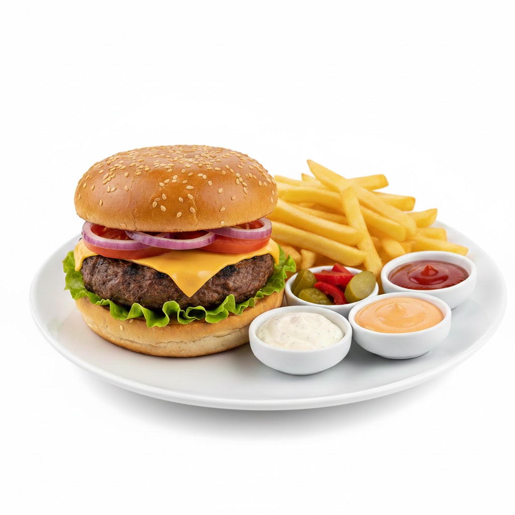 برجر سنجل بيف طازج ومشوي بعناية.