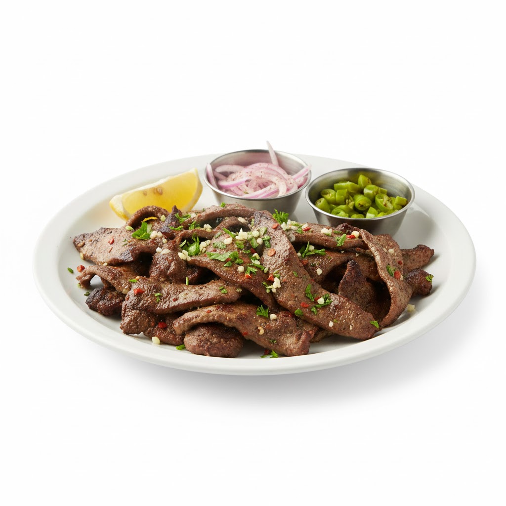 استمتع بمذاق شرقي أصيل مع الكبدة الطازجة والمحضرة بعناية لتقدم لك نكهة غنية ومميزة. يُقدَّم الطبق ساخنًا مع أرز أبيض أو خبز طازج ومخلل ليكتمل الطعم ويمنحك تجربة شرقية أصيلة ومشبعة.