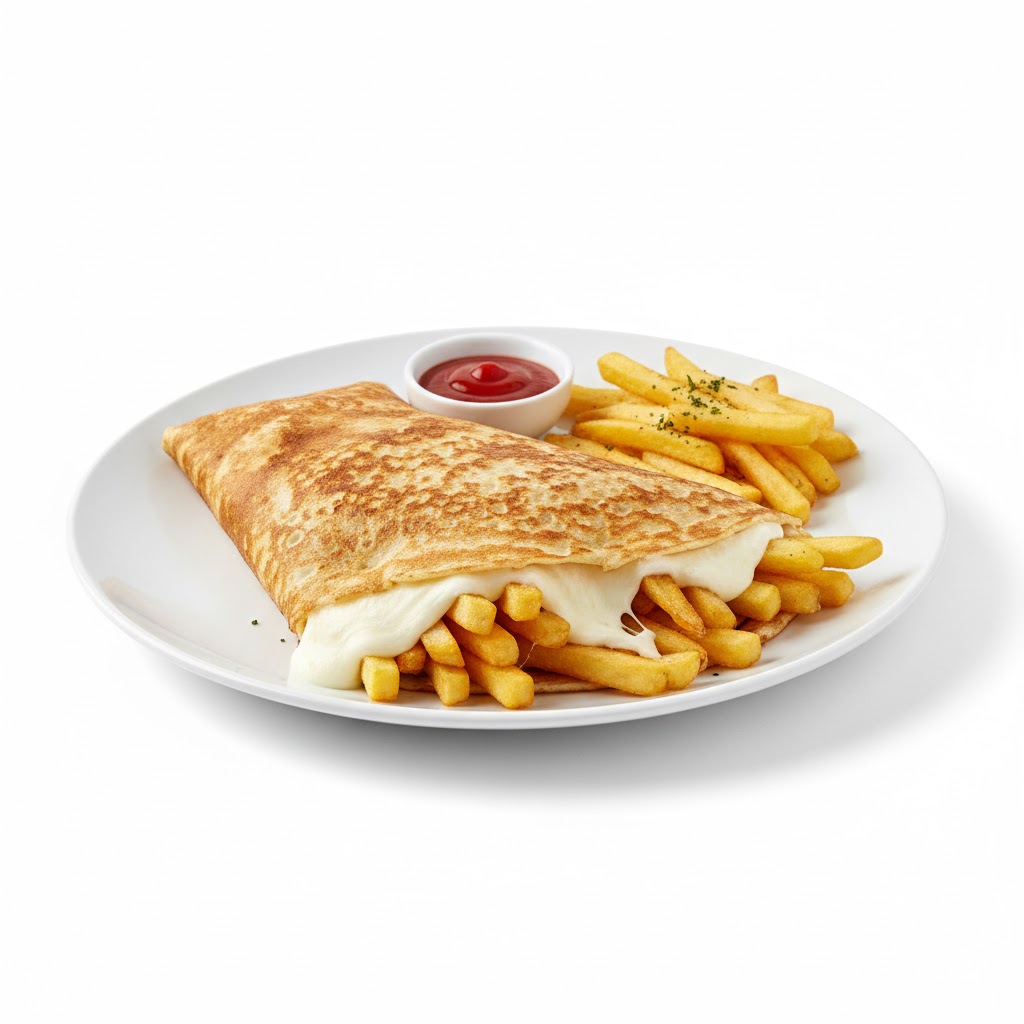استمتع بطعم شهي ومميز مع كريـب بطاطس بالجبنة الموتزاريلا، حيث تُحشى طبقة الكريب الطرية ببطاطس متبلة بعناية ومغطاة بجبنة موتزاريلا ذائبة تمنحك قوامًا كريميًا وطعمًا لا يُقاوم. اختيار مثالي لوجبة خفيفة أو عشاء سريع ولذيذ يناسب جميع الأذواق.