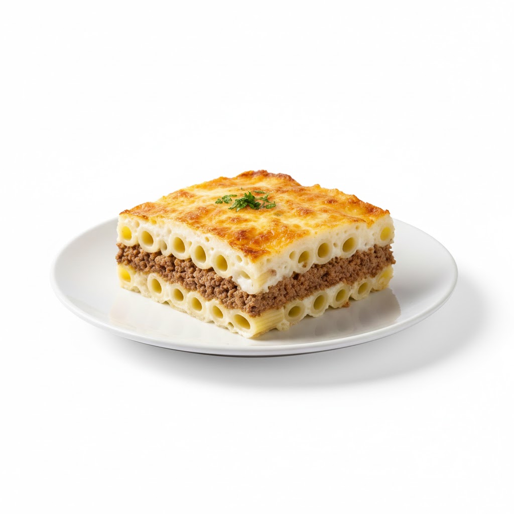 تُقدَّم مكرونة بشاميل باللحمة ساخنة بطبقة علوية ذهبية، وتناسب وجبة الغداء أو العشاء كطبق رئيسي متكامل.