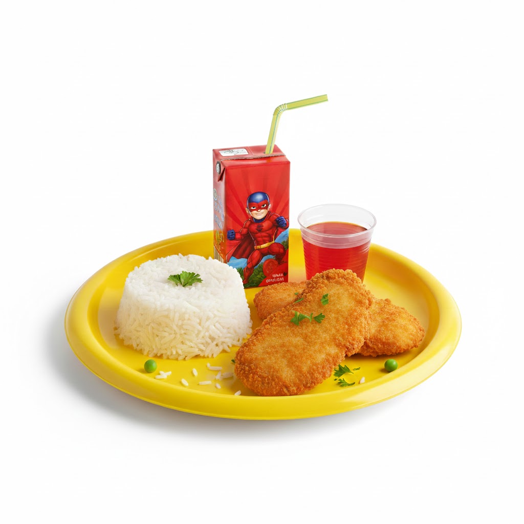 لو عايز تقدم لطفلك وجبة لذيذة ومغذية مع لمسة من المرح، وجبة اطفال 2 من جولدن سبون هي الاختيار المثالي 😋. الوجبة مكوّنة من 2 قطعة بانية مقرمشة، أرز أبيض طازج وعصير طبيعي، مع إضافة لعبة أطفال مجانية لتجربة طعام ممتعة ومسليّة لجميع الأطفال.