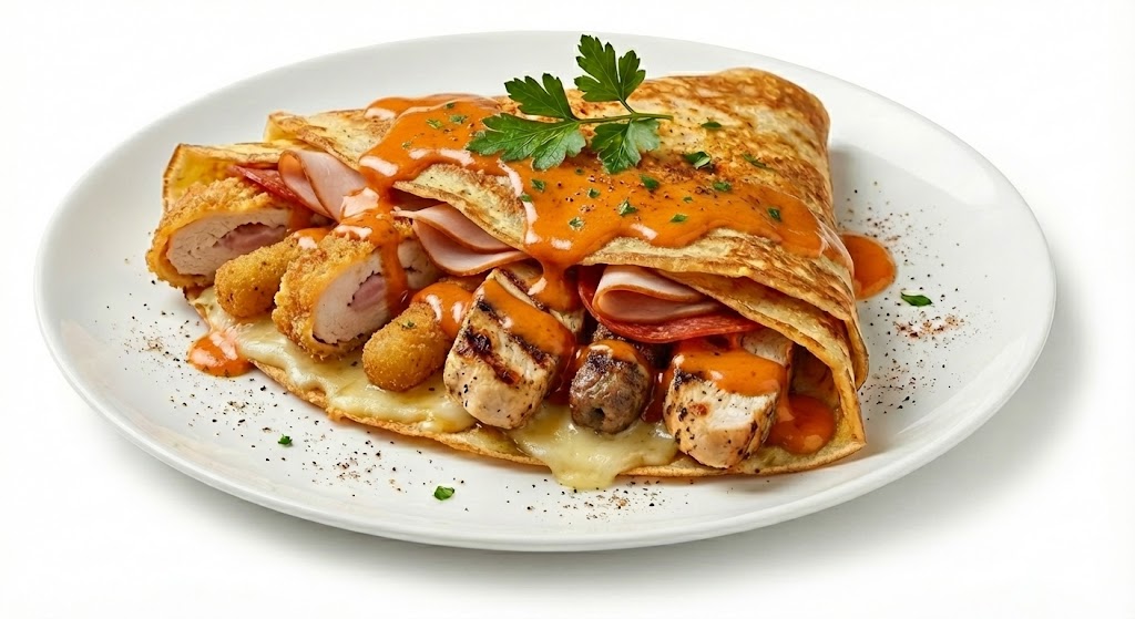 كريب تشيكن باور هو كريب مليء بمكونات متنوعة وغنية بالنكهة، يجمع بين البروتينات المختلفة والنكهات المميزة لصنع وجبة كبيرة ومشبعة، مناسبة لعشاق المزيج القوي والكريب الطري.