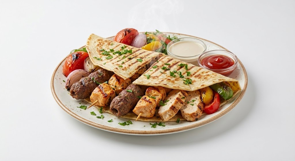يتم تجهيز كل نوع من اللحوم على حدة باستخدام مكونات طازجة وتتبيلة متوازنة، ثم تُشوى بعناية للحفاظ على العصارة والطراوة. بعد ذلك تُلف داخل كريب طري ليخرج بطعم مشوي غني ومميز.