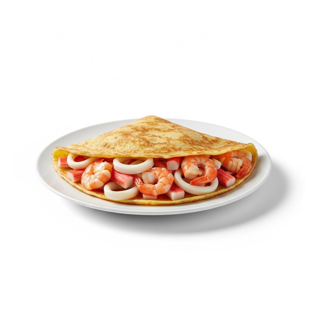 بنقدملك مزيج فاخر من الجمبري والكابوريا والكاليماري داخل كريب طازج متحضر لحظة الطلب، بطعم غني وتتبيلة مميزة تبرز نكهة البحر في كل لقمة.
