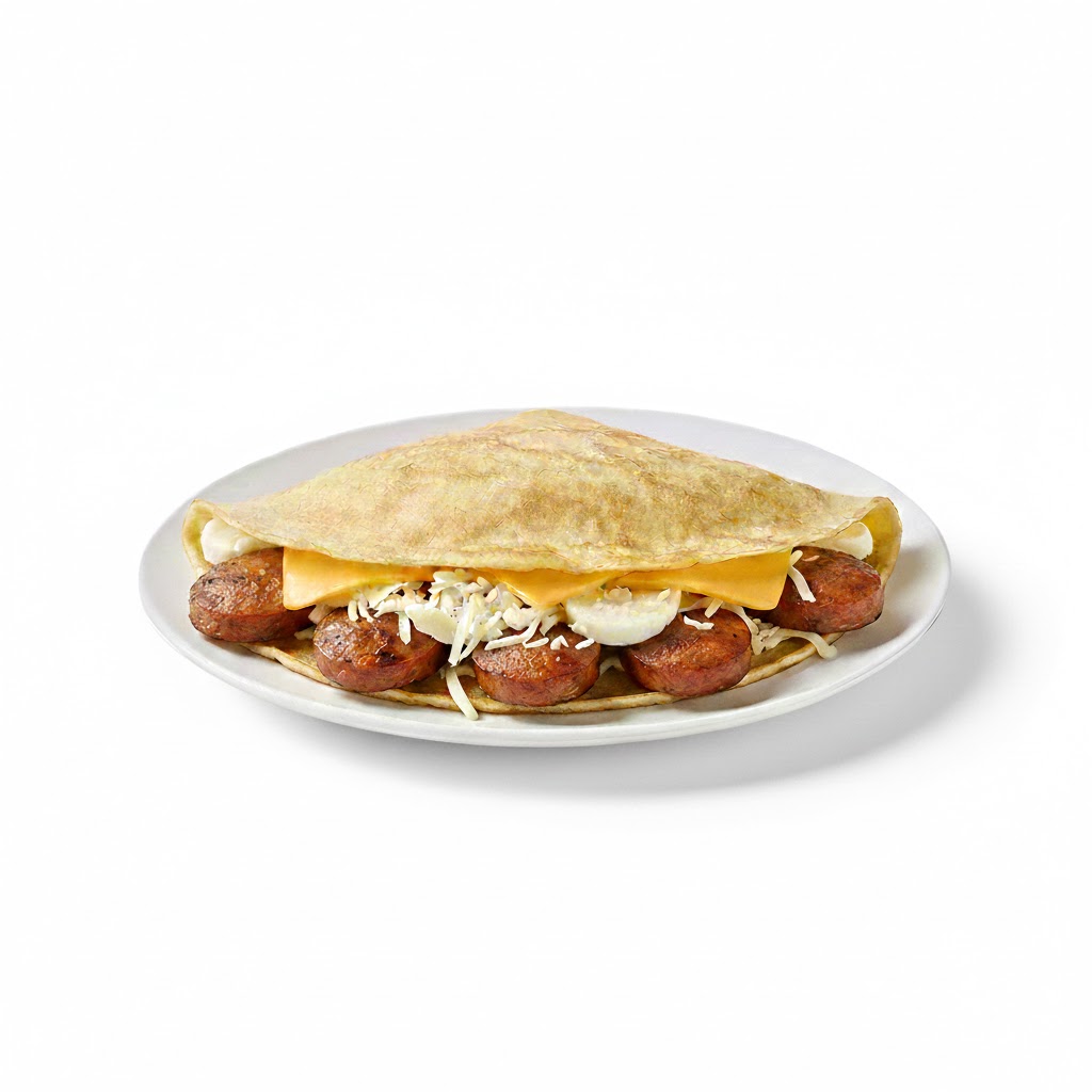 بنقدملك مزيج من الجبن الطازج مع السوسيس داخل كريب خفيف ومقرمش، بطعم كريمي ولذيذ، ويمنحك وجبة مشبعة وسهلة للأكل في أي وقت.