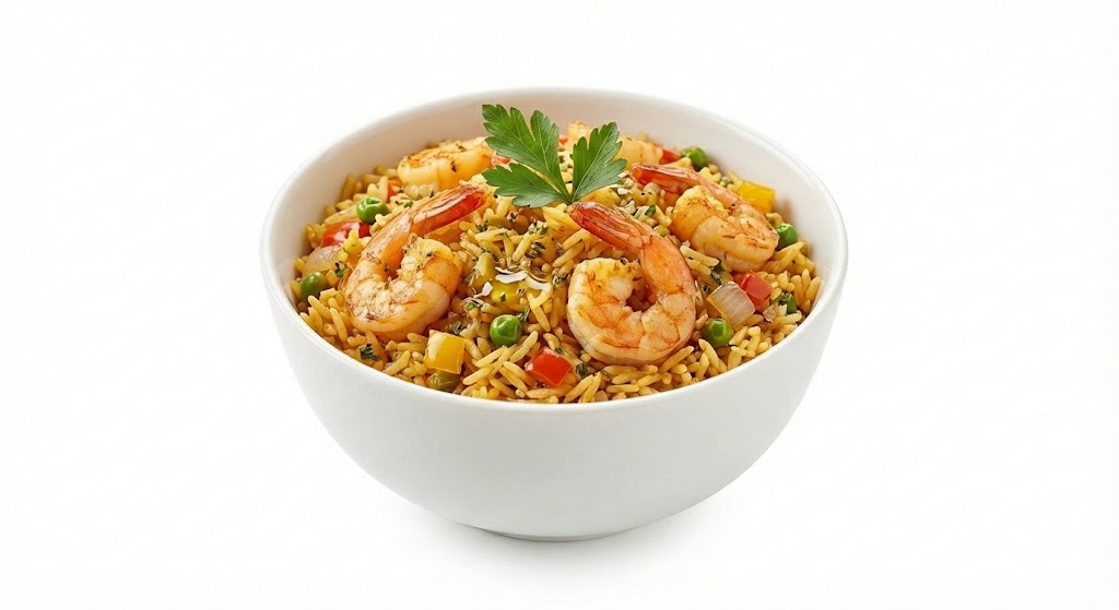 أرز بالجمبري هو طبق غني يجمع بين أرز منفوش وطري والجمبري الطازج المطهو بعناية، مع توابل متوازنة تضيف نكهة بحرية مميزة لكل وجبة.
